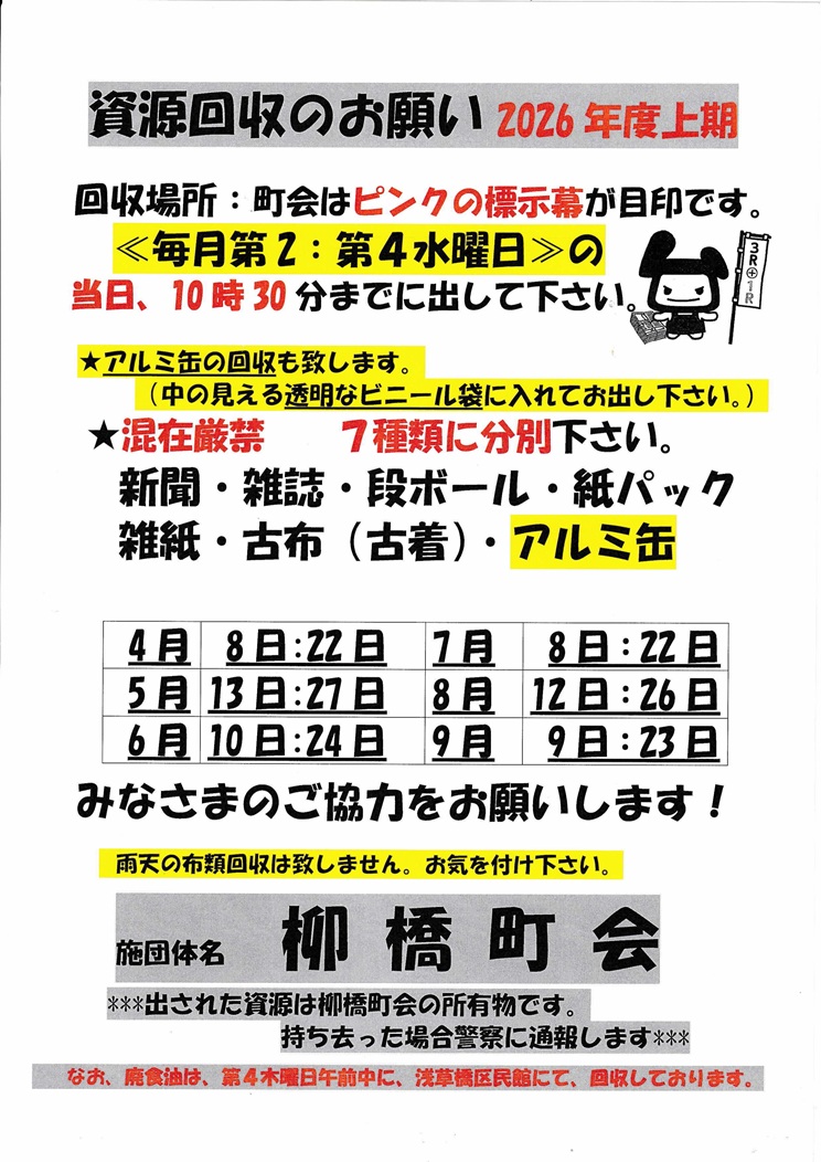 ★ 資源ごみ集団回収2026年上期日程